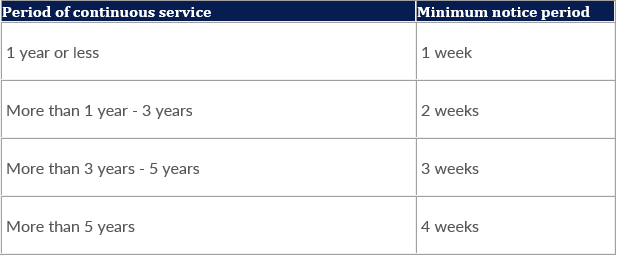 minimum notice periods that may apply (for example, 1 month instead of 1 week).